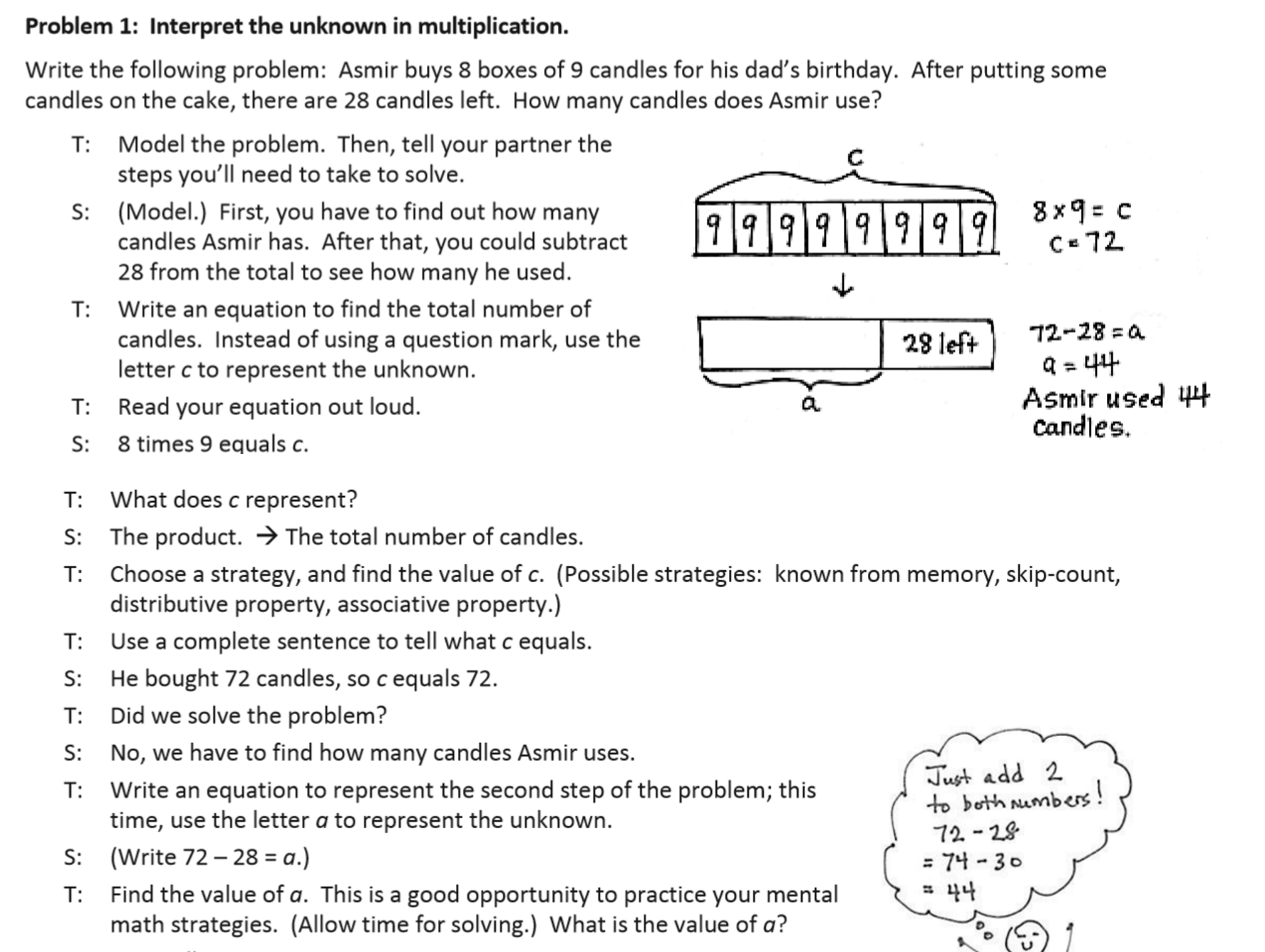 in a later grade, students are not stumbling over how to multiply