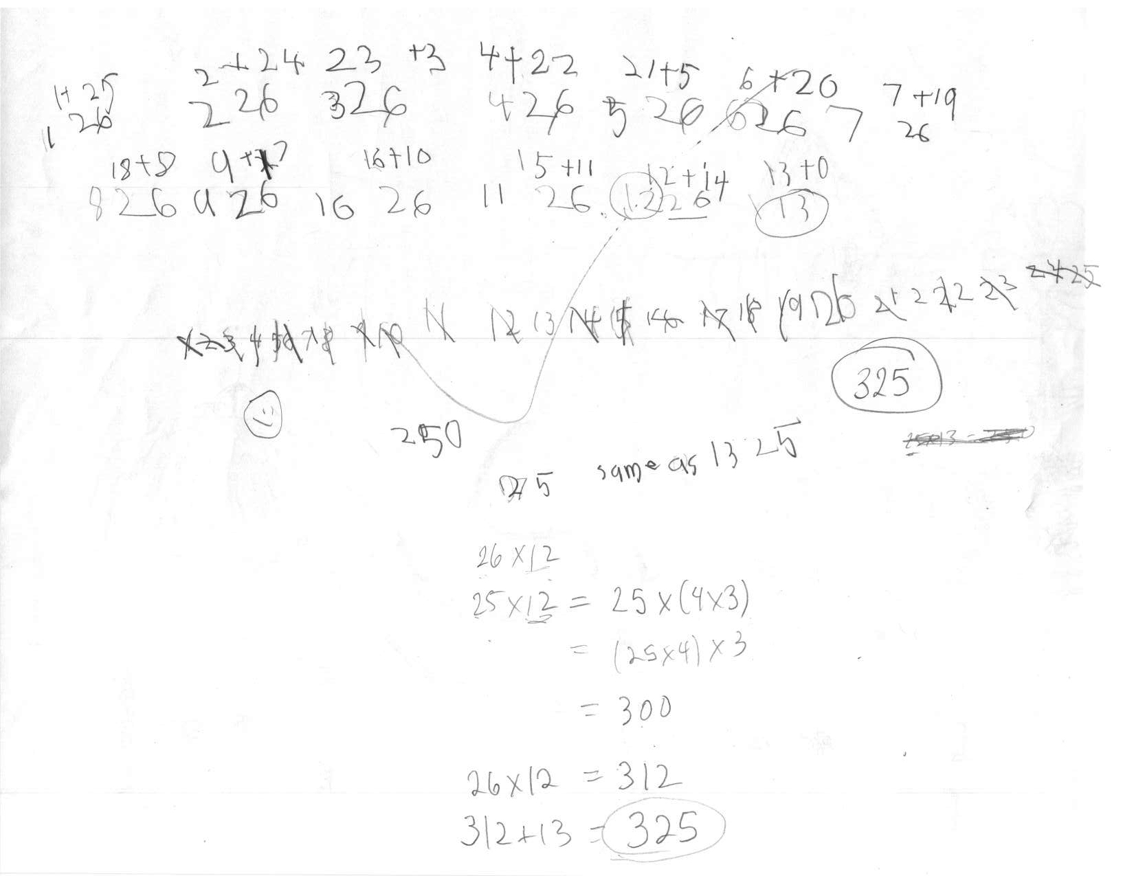 This is the distributive property in action, which becomes an important concept later in algebra. The student is making use of structure, making use of known facts that can be recalled from memory. Eventually,